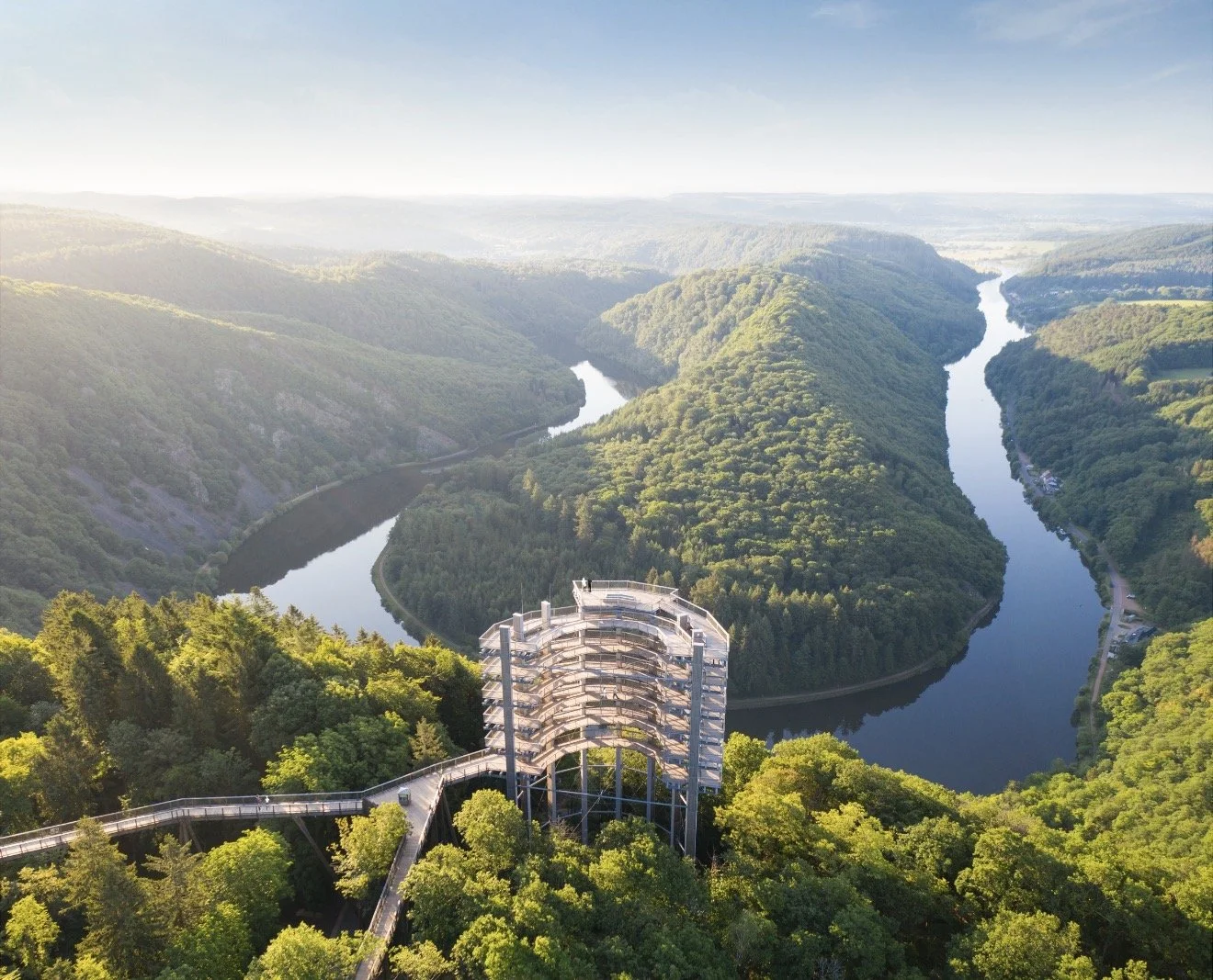 Der Baumwipfelpfad Saarschleife ist ein barrierefreier Baumkronenweg in Orscholz, der Besuchern einen außergewöhnlichen Blick auf die berühmte Saarschleife bietet. Er zählt zu den bekanntesten Naturerlebnisattraktionen im Saarland und verbindet Umweltbildung mit spektakulärer Aussicht.