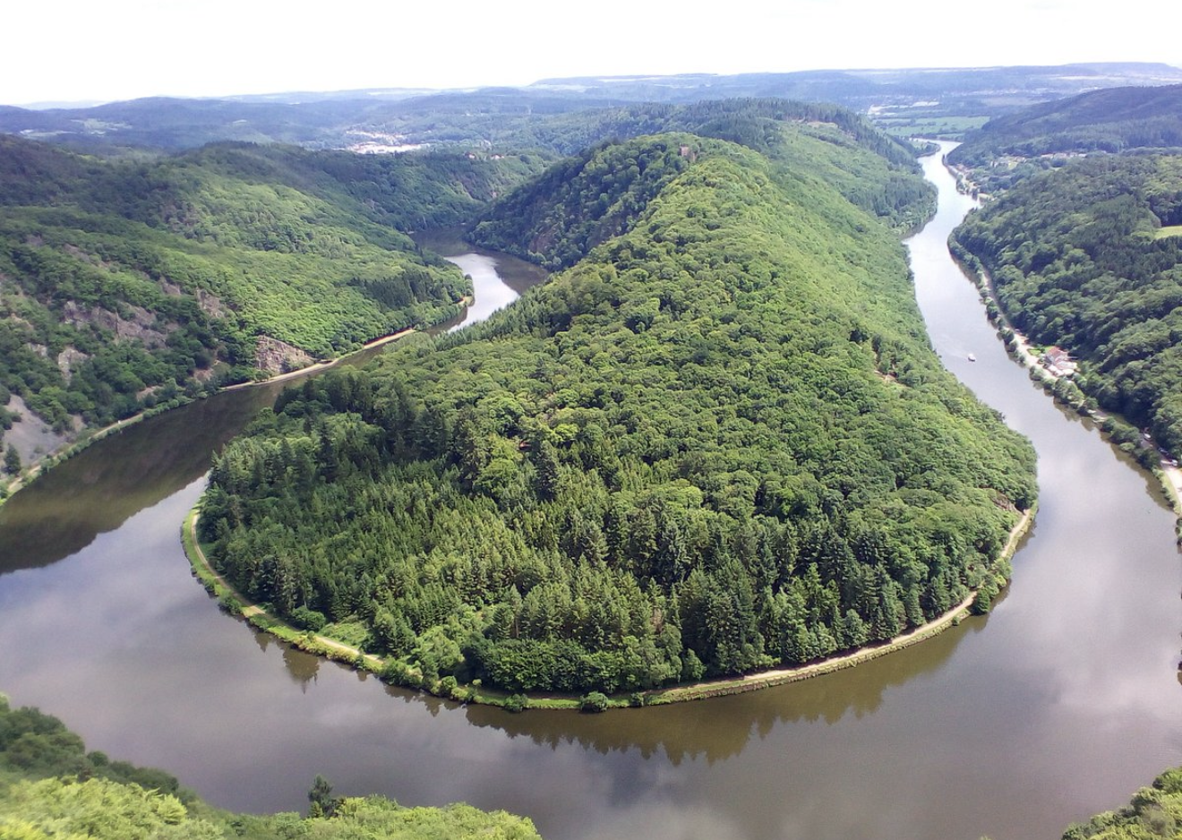 Die Saarschleife ist eine markante Flussschleife der Saar bei Mettlach-Orscholz im Saarland. Sie gilt als Wahrzeichen des Bundeslandes und zählt zu den bekanntesten Natursehenswürdigkeiten Deutschlands. Der Fluss beschreibt hier einen etwa 180-Grad-Bogen um den bewaldeten Bergrücken, was spektakuläre Ausblicke ermöglicht.